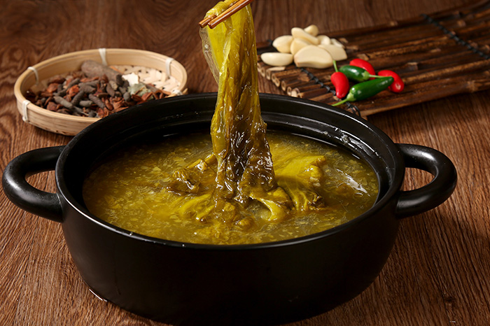 產品優勢:老壇酸菜湯原料主要取自川渝地區傳統工藝發酵而成的老壇酸菜作為基礎原料,再結合老壇酸菜魚底湯風味進行融合,把原本很復雜的一道湯,進行了工業標準化,使操作簡單、味道更加穩定,成為酸菜魚湯產品的必需調料,也可用在酸菜湯系列其他產品及菜肴,用途廣泛。